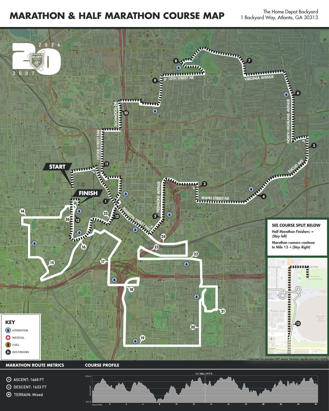 Publix Atlanta Marathon Weekend relocates to the Home Depot Backyard at Mercedes-Benz Stadium. A second half marathon course option was offered for the first time.