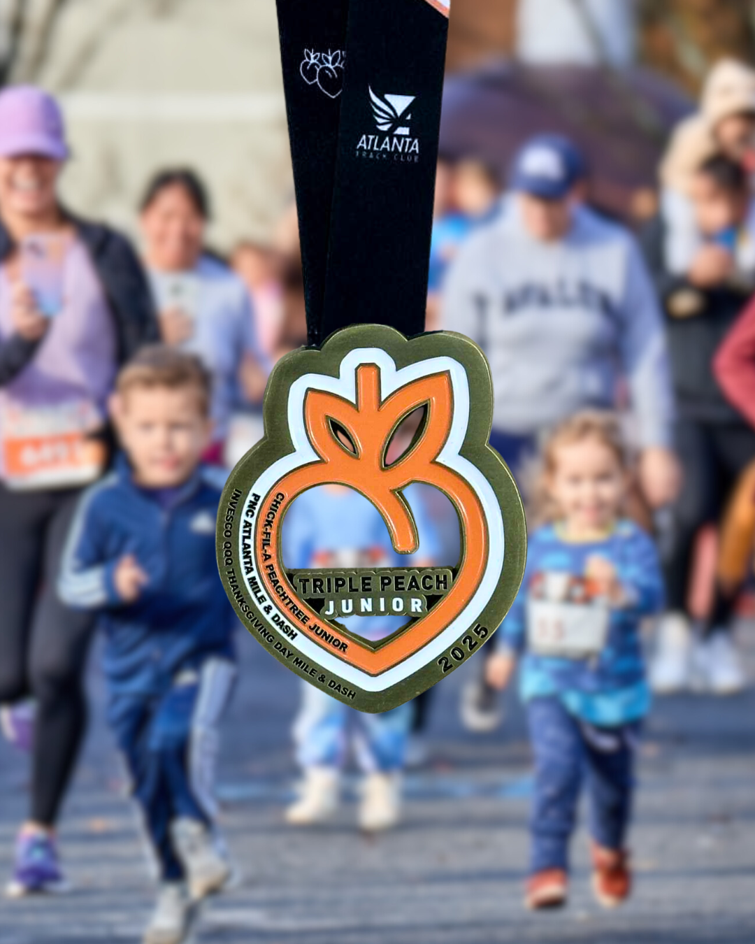 - Triple Peach Junior finisher's medal - awarded at the conclusion of the Invesco QQQ Thanksgiving Day Mile & Dash